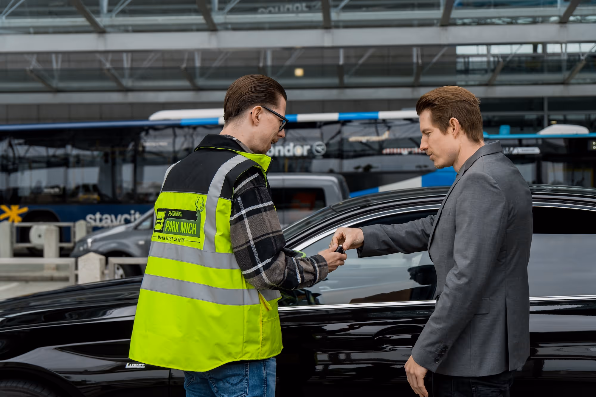 Einfach entspannt ankommen ohne lästige Parkplatzsuche. Wir nehmen Ihr Fahrzeug direkt an Ihrem Terminal entgegen.